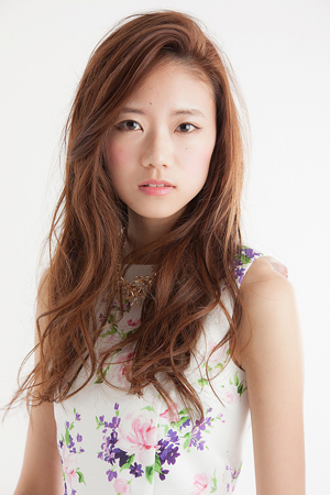 可愛すぎない大人のロングは前髪を長めに残し、かき上げるのがオススメ。この髪型なら甘めのお洋服でもバランスがとれて大人かわいい雰囲気にピッタリ。カラーはベージュ系の色味で髪が柔らかく見えるようにしました。デニムのカジュアルスタイルにもGOOD!